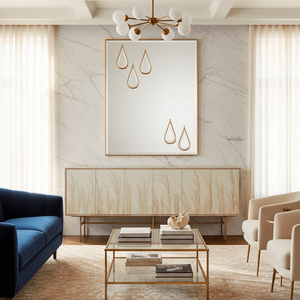 Downpour հայելինն առանձնանում է դասական դիզայնով և անձրևի կաթիլների հիասքանչ մոտիվներով, որոնք եզրագծված են ոսկե շրջանակով։